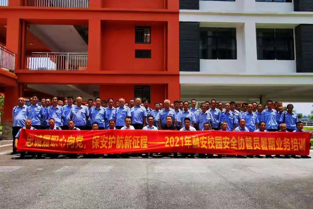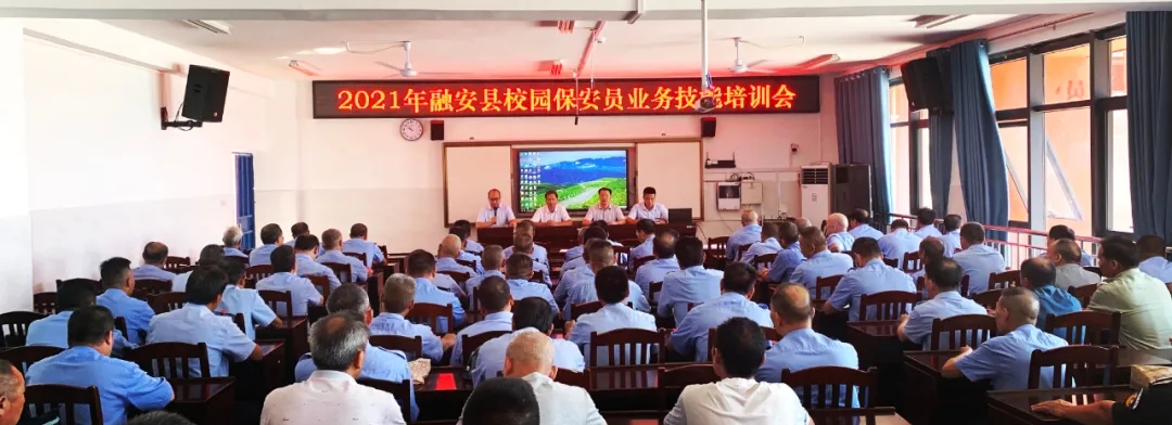 为认真贯彻落实《自治区教育厅 自治区公安厅关于做好2021年全区中小学幼儿园校园安保队伍培训工作的通知》精神,进一步加强中小学幼儿园安全防范工作,规范校园安保队伍管理,增强安保人员安全责任意识,提高安保人员素质,切实保障广大师生的人身安全,近日,广西万腾保安公司对在管的融安县中小学幼儿园、南宁市第一中学、南宁市第三十四中学等校园200多名保安人员进行了业务培训。公司领导、教育局主管部门领导全程参加培训活动,并为培训作动员讲话。
