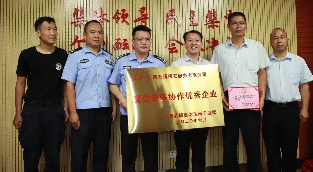 自进驻南宁监狱开展安保服务以来,万腾保安公司与南宁监狱时刻保持无缝对接状态,全力支持、密切协同做好安保监管服务工作。公司驻监安保服务中心全体队员严格遵守监狱各项规章制度和监管服务要求,积极协作监区民警担负监内重点时段、重点部位的巡逻检查,警力协防、处突演练、罪犯押送,突发事件处置、监区视频监控、罪犯家属会见接待和门卫值守等重要安保任务,主动承担监区安保工作,恪尽职守,履职尽责,“想客户之所想,急客户之所急,帮客户之所需”,监管工作连续三年实现两个100% (100%无安全责任事故、100%无逃犯)的安保优质服务,确保了监狱安全稳定。