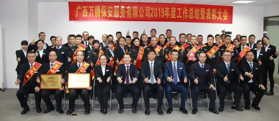 1月18日下午,广西万腾保安服务有限公司在集团总部召开2019年度工作总结暨表彰大会,公司董事长杨克春先生、集团公司管控部部长李文震先生、公司领导及职能部门、项目主管级以上管理层、受表彰员工近80人参加会议。