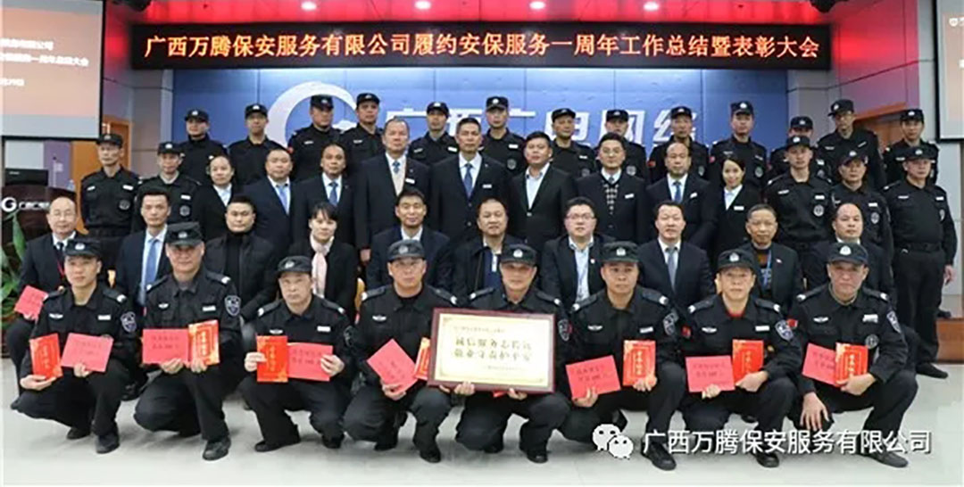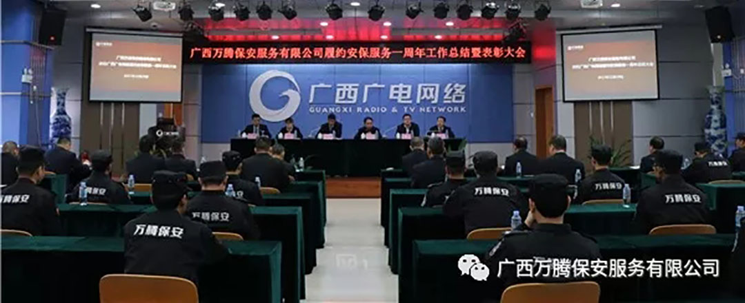 神州春来早,华夏新时代。12月29日,在2018年元旦即将到来之际,广西万腾保安服务有限公司在服务项目广西广播电视信息网络股份有限公司召开履约安保服务一周年工作总结暨表彰大会,喜获了广电网络公司赠送的“诚信服务志长远,敬业守责护平安”的荣誉牌匾和给管理层及队员颁发的奖金。这份沉甸甸的荣誉,是广电网络公司关心厚爱与双方相互支持、默契配合的有力见证,是项目全体安保人员共同努力、辛勤服务和倾情付出的丰硕成果,更是对万腾保安的最大肯定与最高褒奖。
