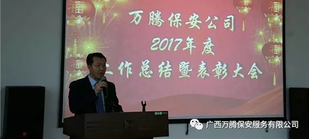 辞旧灵鸡歌日丽,迎新瑞犬报年丰。2018年1月27日下午,广西万腾保安公司2017年度总结表彰大会在广西老年大学凤岭校区召开,集团公司管控部领导、公司班长以上管理层及受表彰的集体和个人参加了会议,会议由公司人力部刘燕月经理主持。