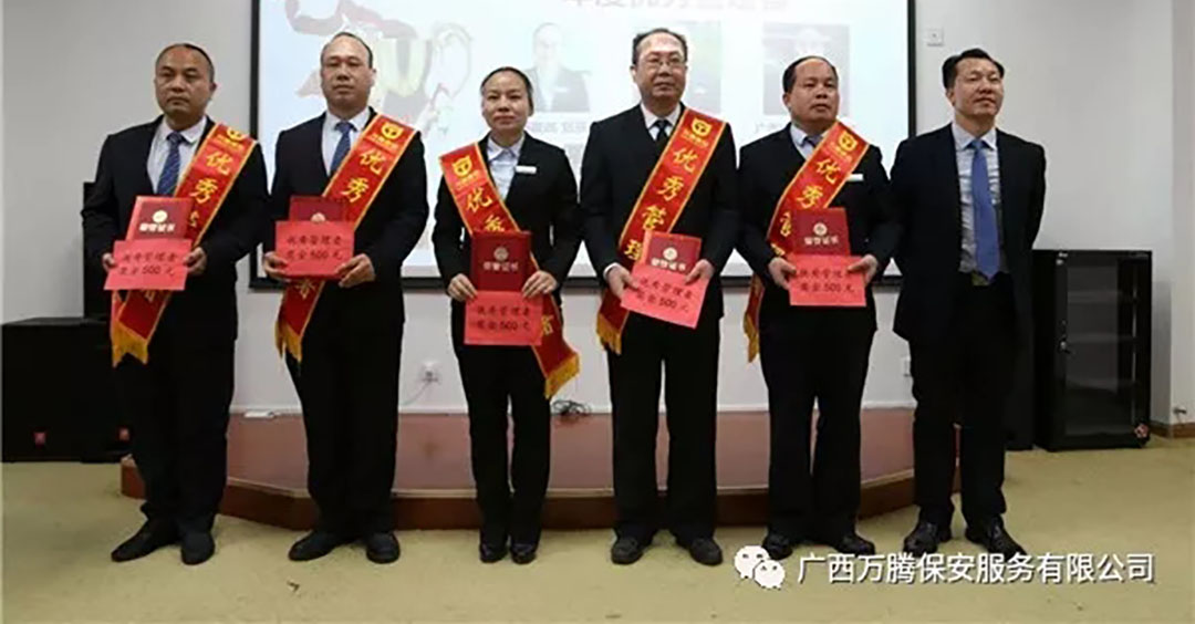 奖杯凝聚千钧力,锦匾汇融万缕情。最后,公司人力部宣读了《关于表彰2017年度先进集体和先进个人的决定》。公司领导给市场拓展有功之臣颁发奖金,向受到表彰的2个服务中心,5名“优秀管理者”、11名“优秀员工”和5名“优秀新员工”颁发了奖牌、证书和奖金。【万腾保安宣】