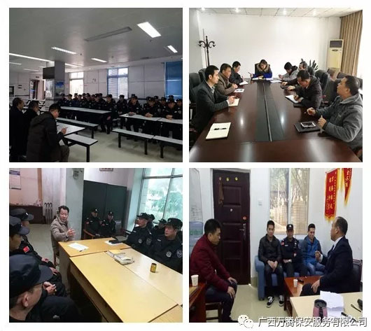 为认真做好节日安保工作,确保队伍稳定和广大客户安全,公司于节前召开专门会议,制定并下发专项通知,对春节安保工作进行周密部署。要求各项目服务中心及时启动春节安保预案,大力加强骨干带班值班,深入排查各类安全隐患,积极落实目标责任制,严格检查督导队伍值班情况,进一步强化管理辖区重要物资和重点部位的安全防范力度,确保节日安全。初一上午,公司领导莫总经理亲自到电视台、广电网络、师院、凤凰纸业、五中等部份项目检查安保工作,慰问值班队员,有力地鼓舞了队伍的士气。各项目服务中心及时传达部署节日安保工作,召开节前教育会,加强检查部署,强化队伍管控,制定春节安保工作预案,确保不出疏漏。