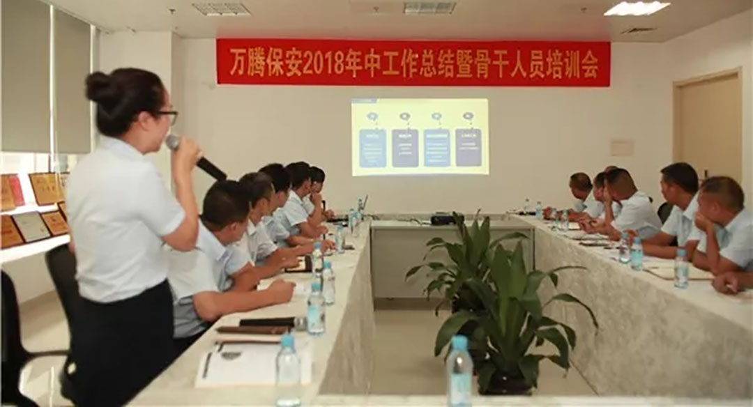 7日26日,广西万腾保安服务有限公司在集团总部召开2018年上半年工作总结会暨管理骨干培训会。公司总部及各项目主管以上人员参加,会议由人力资源部经理刘燕月主持。