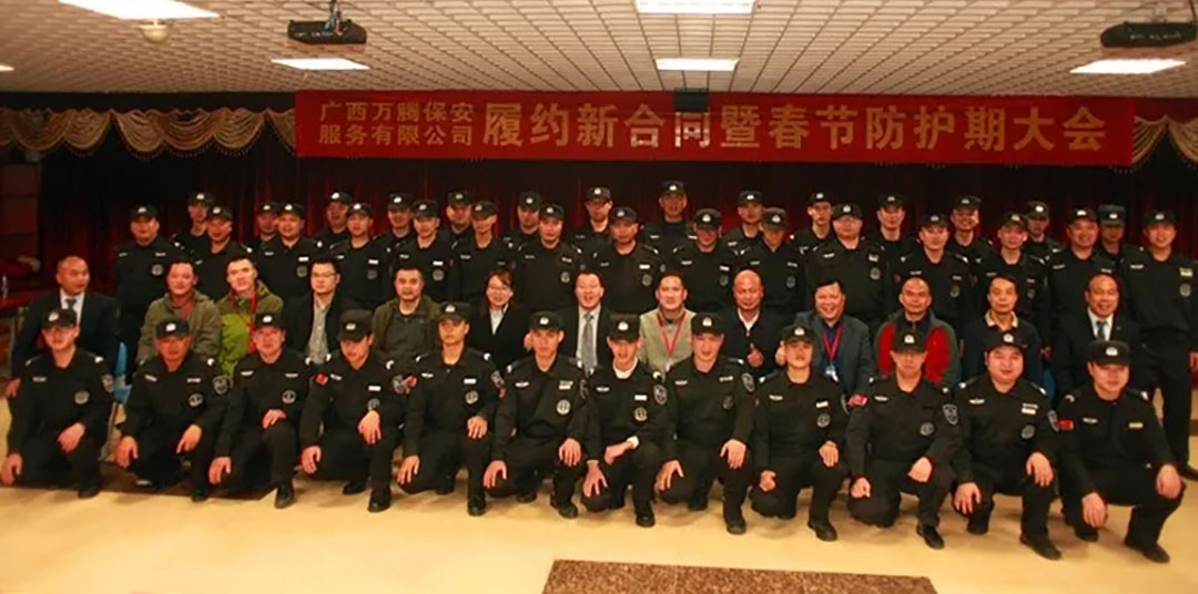 会上,原广播电台、电视台安保主管部门领导先后介绍了两台的安保岗位设置及职能情况,明晰了职责,强调了重点;广西万腾保安公司驻广播电视台项目经理对两台合并后履约安保服务、管理好项目发出了铮铮誓言,表明了管好项目、做好服务的信心与态度;公司莫金山总经理在两台合并后履约新合同暨春节防护期的讲话中首先表达了感谢广播电视台的信任、感谢全体队员两年来的默默奉献与坚守、感谢新入职加入到万腾大家庭的新队员,并对客户作出了服务承诺,要求全体队员要以履约新合同为契机,根据两台合并后的安保任务特点、要求,按“一台两制”的模式,不断增强“四个意识”,树立“四个自信”,创新管理、靠前指挥、主动作为,通过不断加强岗位业务技能培训,搞好以老带新的传、帮、带工作,使队员尽快适应环境、尽快熟悉职责、尽快进入状态,尽快形成战斗力,从而实现平稳交接和顺利过度。针对即将到来的春节和全国“两会”的安全工作,他要求全体队员要以“特别能吃苦、特别能战斗、特别能忍耐、特别能团结、特别能奉献”的优良作风,敢于担当,勇打头阵,为广播电视台的安保工作保好驾、护好航。