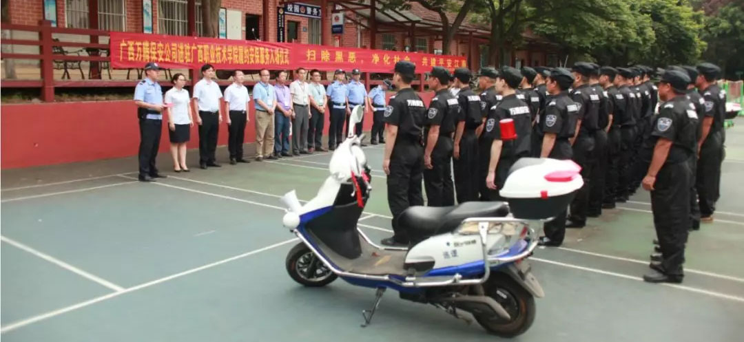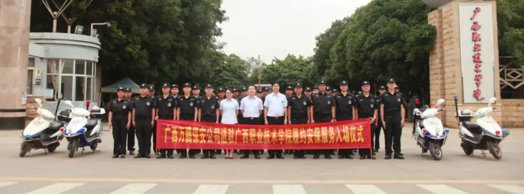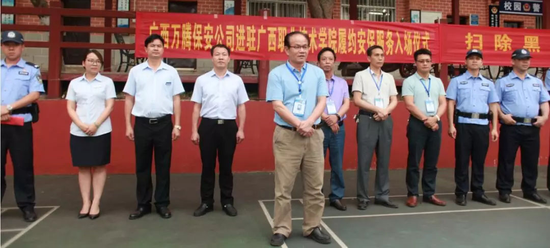 为全面提升学院安保服务质量,创建平安和谐校园,广西职业技术学院通过公开招标确定了广西万腾保安公司为学院安保服务公司。4月30日下午,学院在风雨球场举行进驻仪式,学院黄云峰副院长、后勤保卫处谢声和处长及处保卫干部、万腾保安公司总经理莫金山及其相关部门领导、项目安保人员约50人参加仪式。仪式由后勤保卫处处长助理邓满意主持。