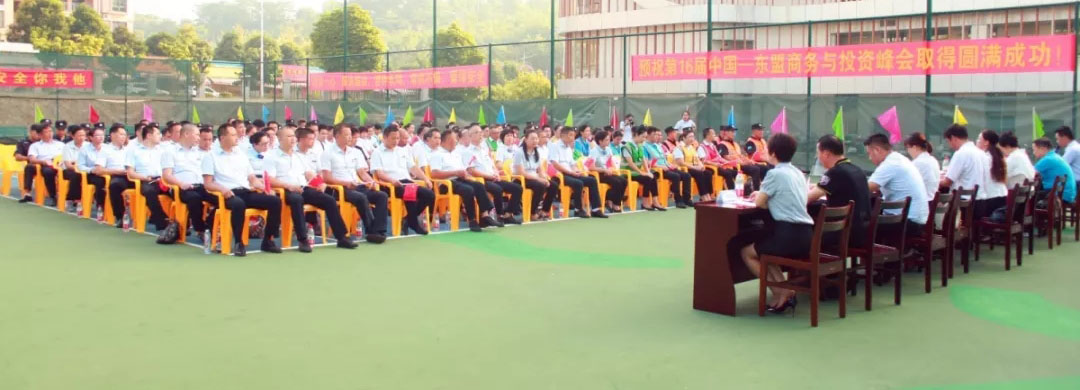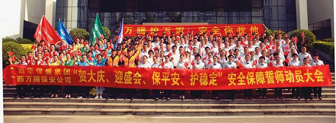 9月7日上午,广西万腾保安公司联合广西华保盛物业服务集团在自治区老年大学凤岭校区举行“贺大庆、迎盛会、保平安、护稳定”安全保障誓师动员大会。会上,按誓师动员大会流程先后宣读活动方案和以“交通指挥、防爆处突、警棍盾牌操、应急消防”等为主要内容的应急演练及组织与会代表的集体宣誓,将提升安保能力水平,为群众提供更快、更好、更安全的服务发出铮铮誓言。