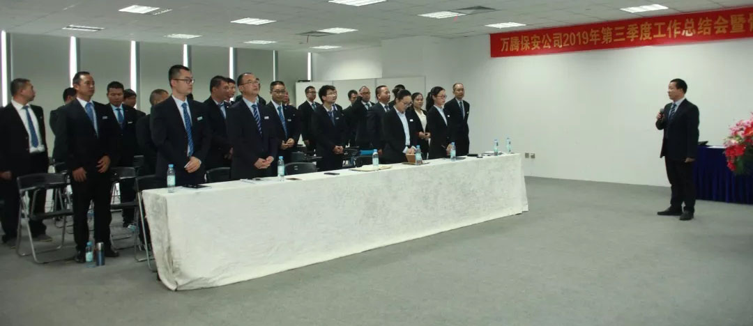 10月31上午,广西万腾保安公司召开三季度总结暨冲刺全年目标动员会。公司职能部门、各项目负责人近40人参加了会议。会议由人力部刘燕月经理主持。